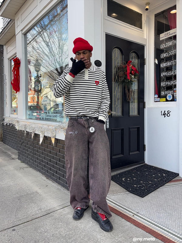 Discover Playful Elegance with our Aelfric Eden Leopard Double Waist Baggy Jeans! Embrace the charm of Mushroom Village in these black denim jeans featuring a unique double waistband with a...