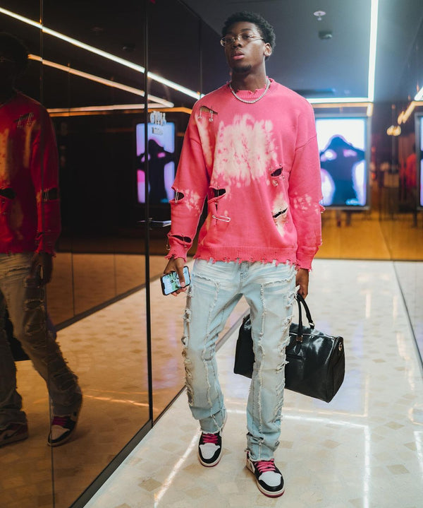 Clothing details: Frayed Design.