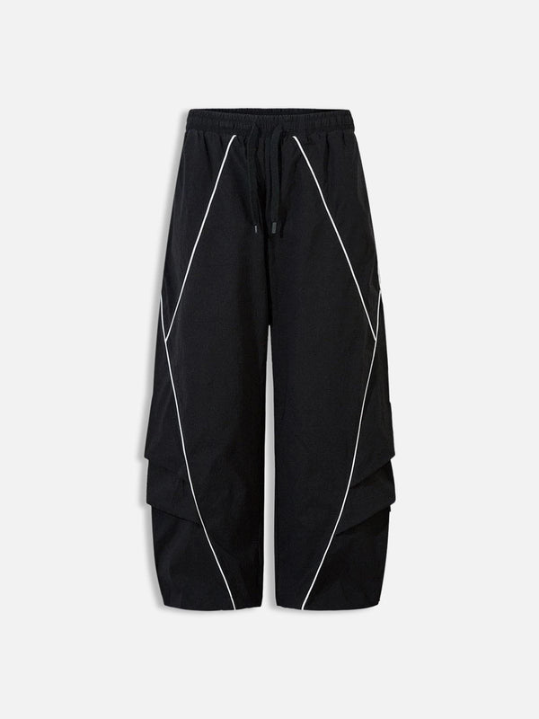 These stylish pants have contrasting white piping at the seams for a sleek, sporty look. The loose tube silhouette and drawstring waistband are both comfortable and have a modern streetwear...