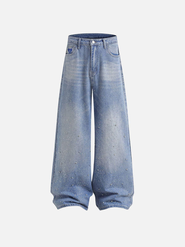 These jeans combine classic denim with a touch of glam, featuring eye-catching rhinestone embellishments that elevate their style. The baggy fit and unique detailing make them perfect for adding a...