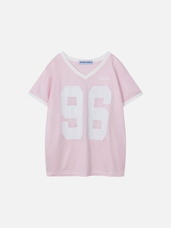 It's the perfect combination of style and comfort! Featuring a unique number graphic in the center and comfortable mesh fabric, this V-neck T-shirt is perfect for showing off your style....