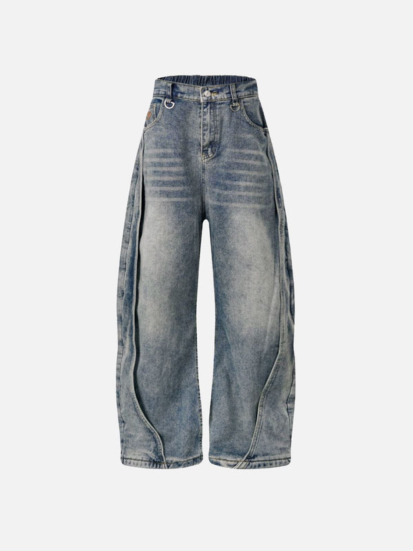 Featuring a unique curved panel design that adds a modern, artistic twist. Crafted from washed denim for a soft, vintage-inspired look, these jeans offer a perfect blend of style and...
