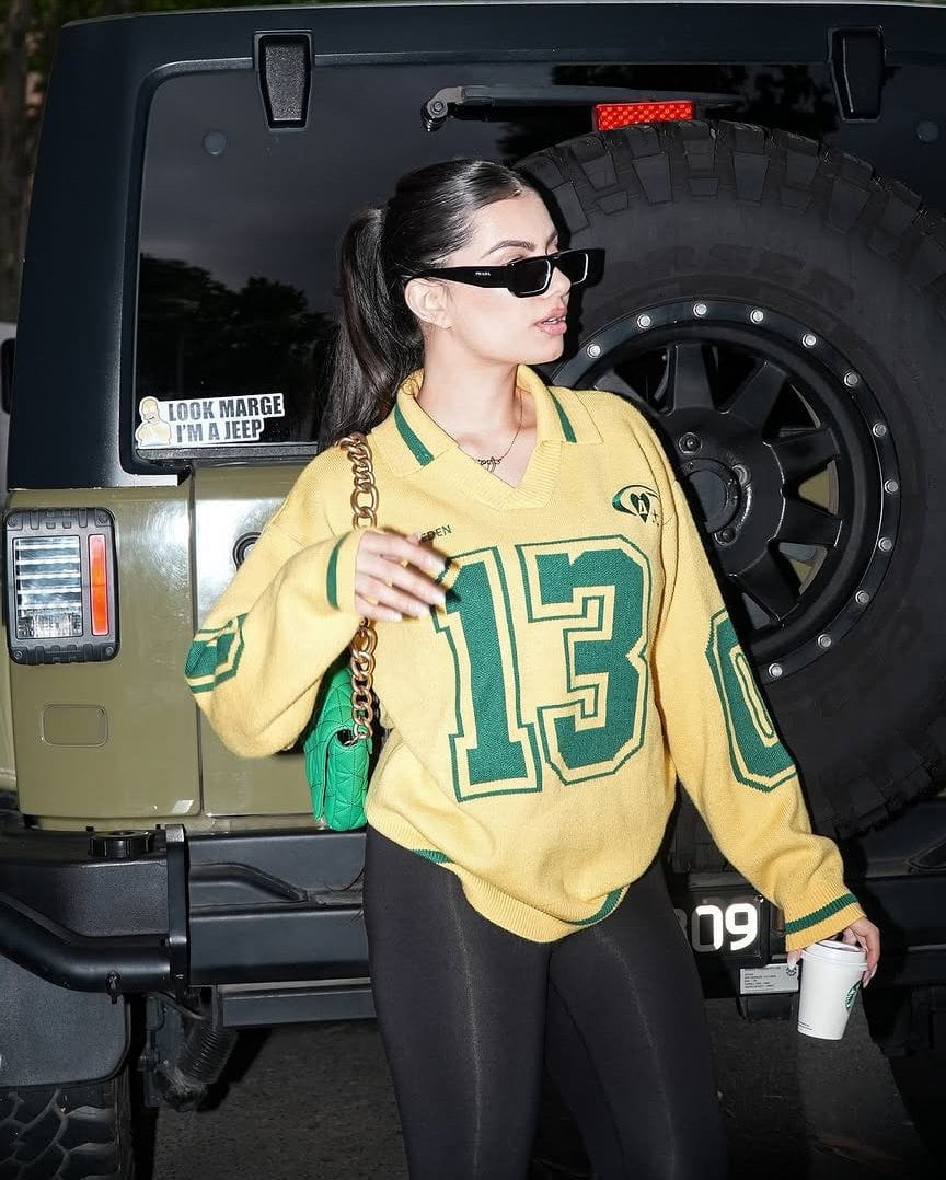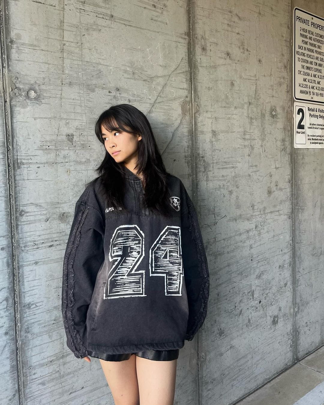 Clothing details: Fringe, Number Print, Double-zip, Contrast Sleeve Stripes.