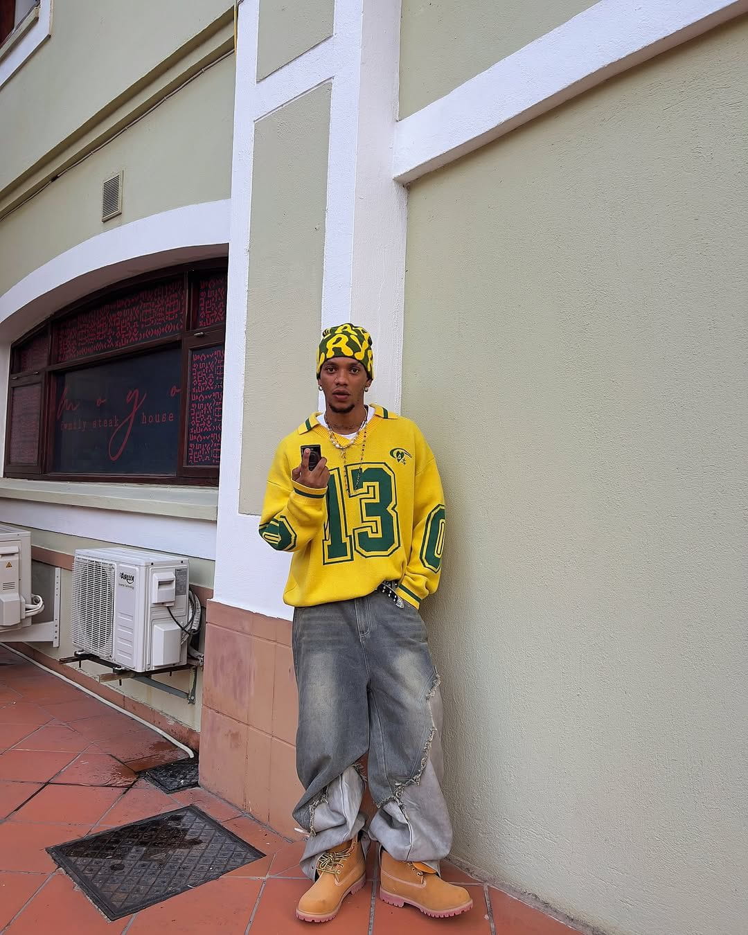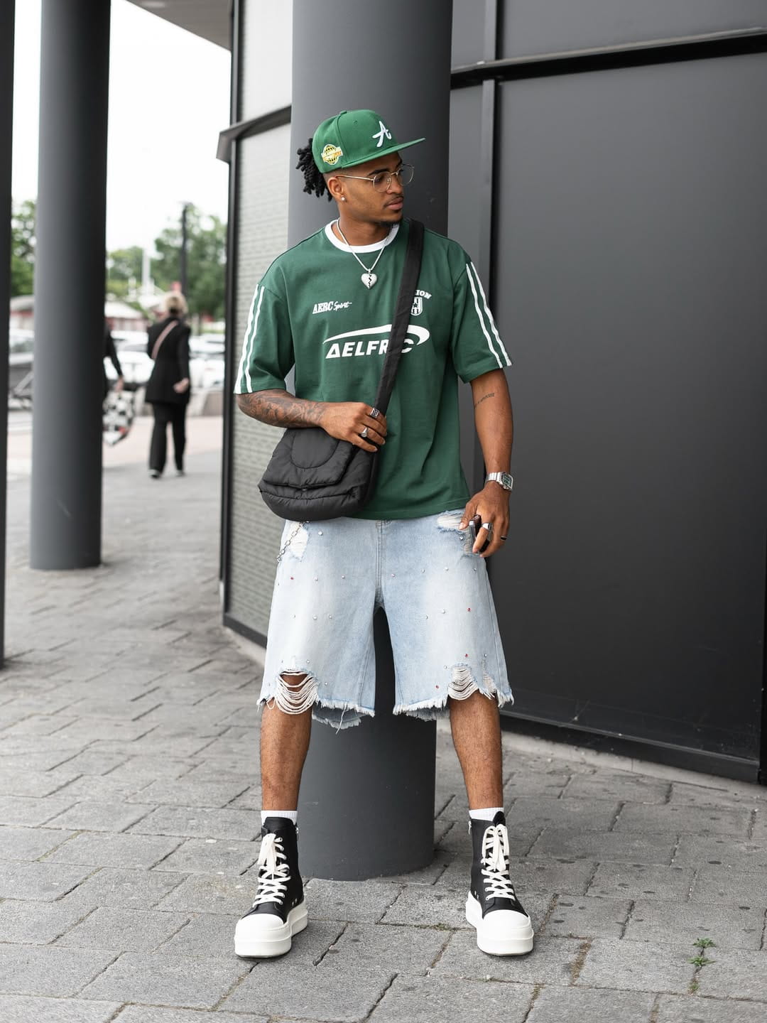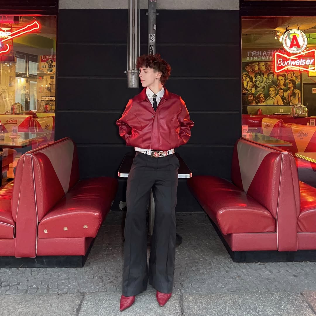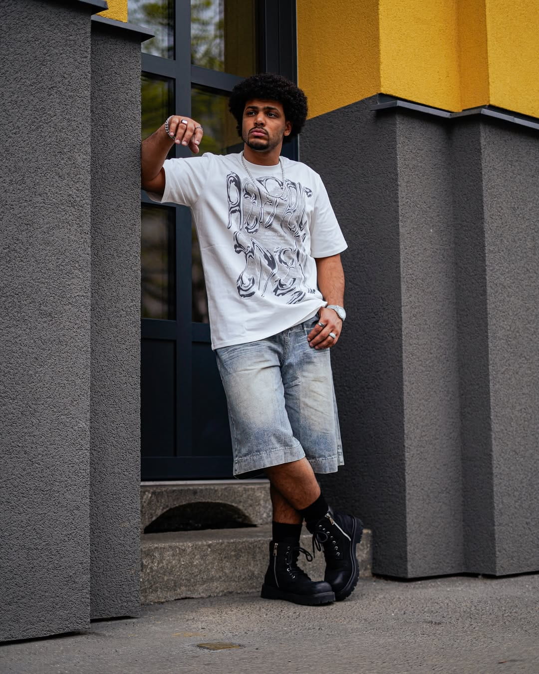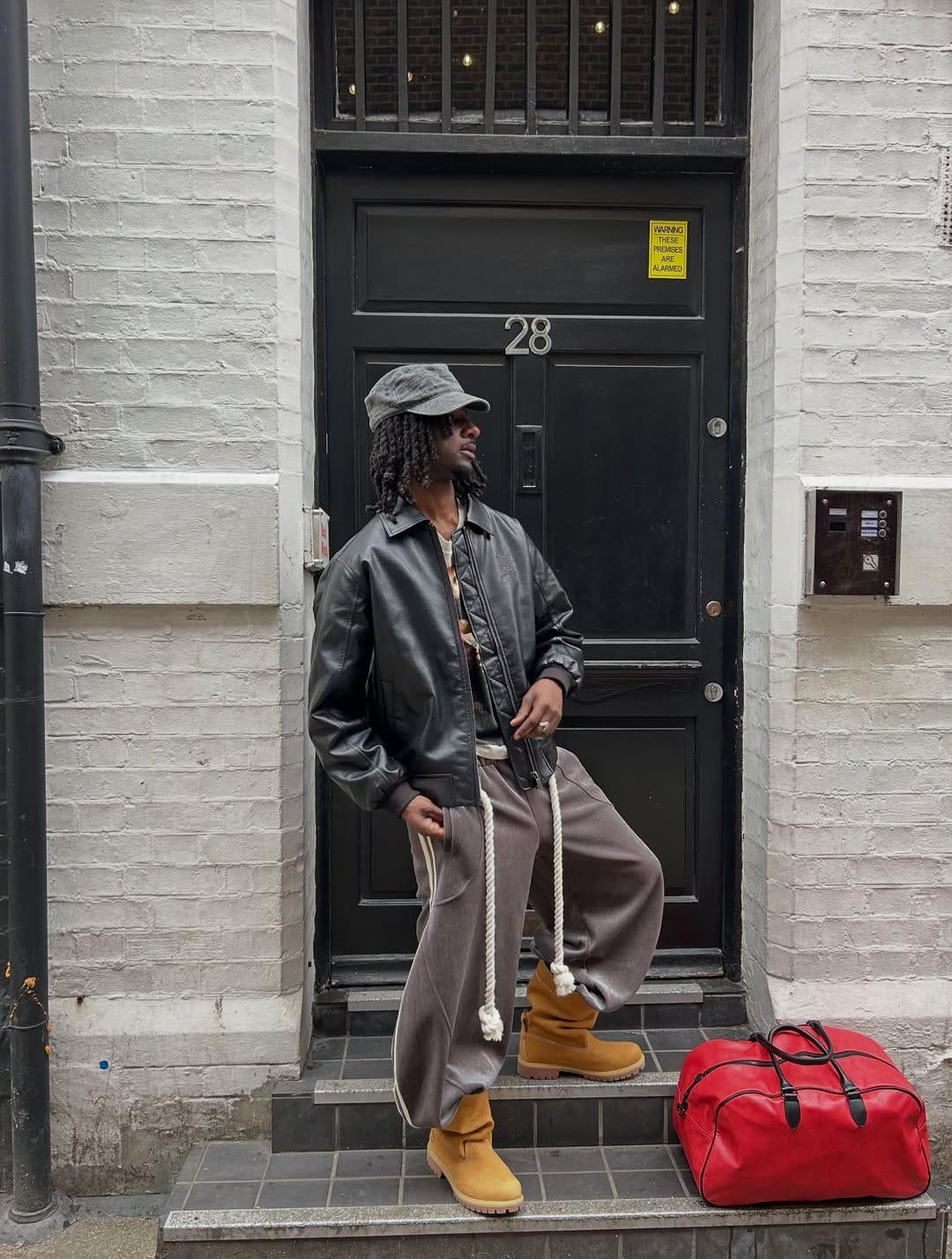 Description: These baggy-fit jeans feature a unique curved cut and a waistband-inspired hem detail at the cuffs, blending structure with creativity. The innovative design brings a fresh, fashion-forward twist to a classic silhouette. Paired with a red checkered Kerchief, it creates a striking look thatâs anything but ordinary.