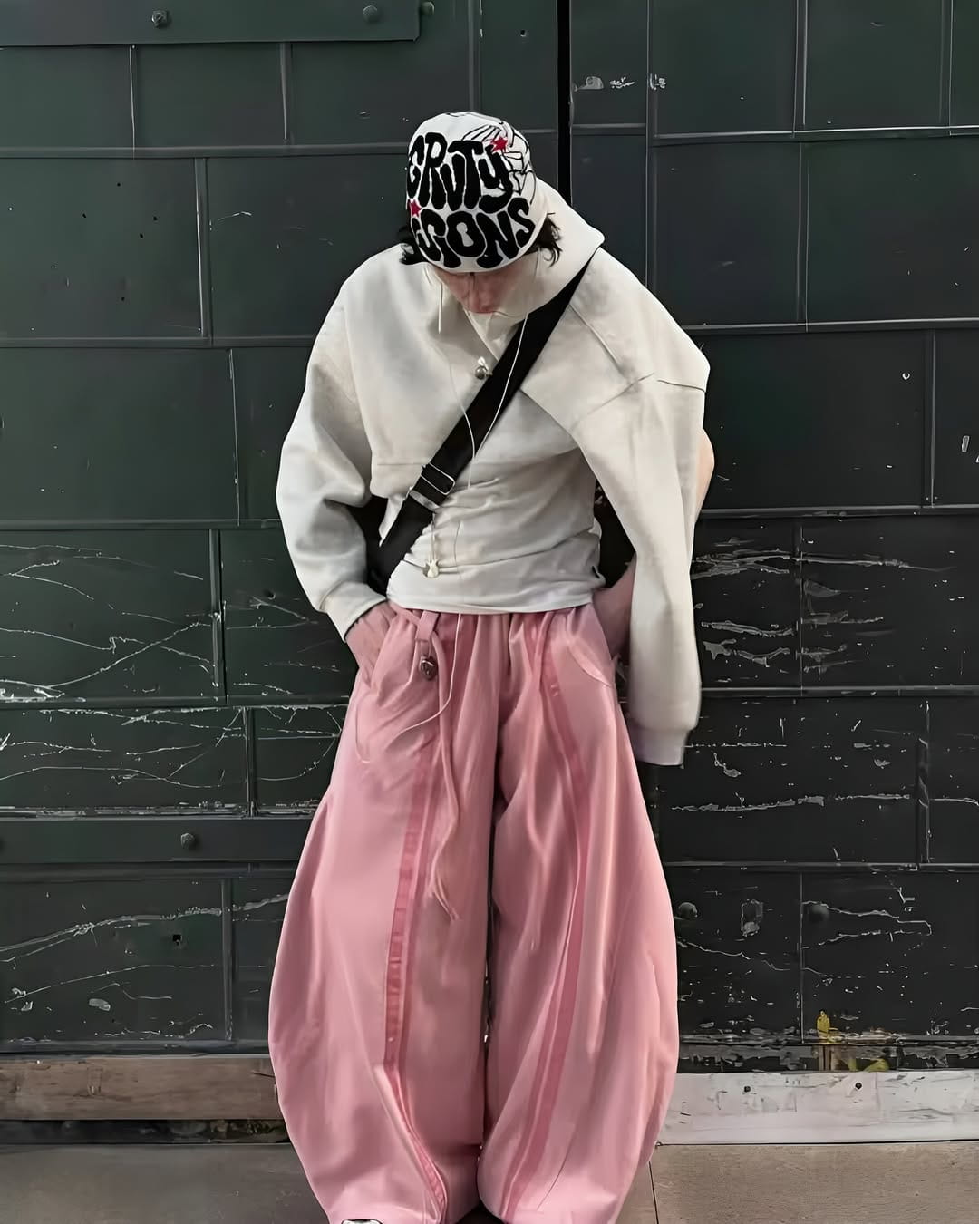 Description: These Barrel Sweatpants blend laid-back ease with a unique touch. The wide-leg fit and elasticized waistband ensure all-day comfort and freedom of movement, while the distinctive rope drawstring adds a subtle contrast to the soft fabric. Designed to complement every height, they create a relaxed stacked effect for taller frames, a clean streetwear vibe for mid-heights, and a naturally draped, elongating look for shorter wearers. One pair, endless stylesâyour height, your vibe!