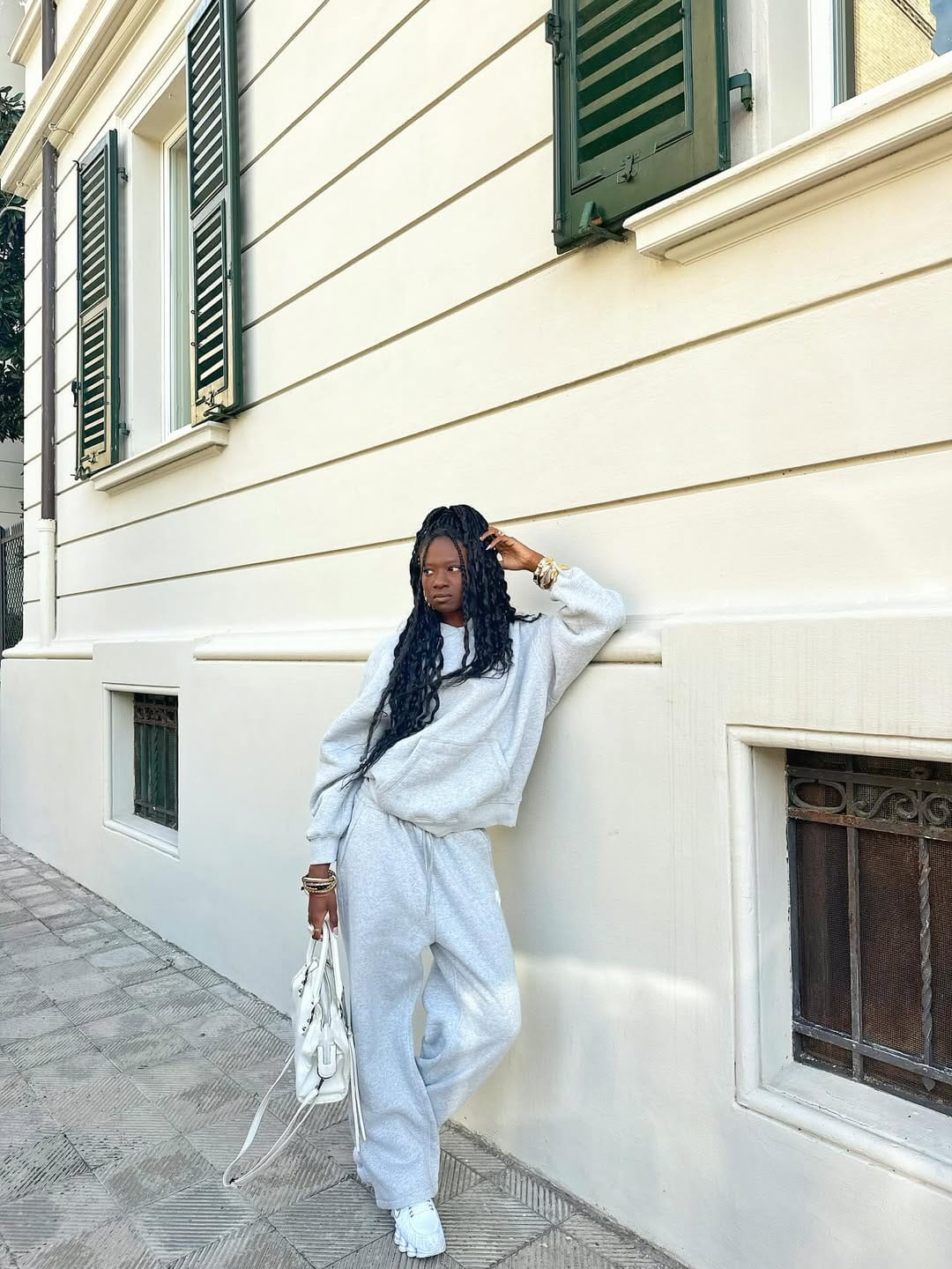 The hoodie drapes with quiet precision â oversized, yet composed. The straight-leg sweatpants mirror their flow with a natural line that moves in harmony with the body. Every stitch and proportion has been refined through real feedback from millions worldwide, engineered for a relaxed fit that feels deliberate, never forced.