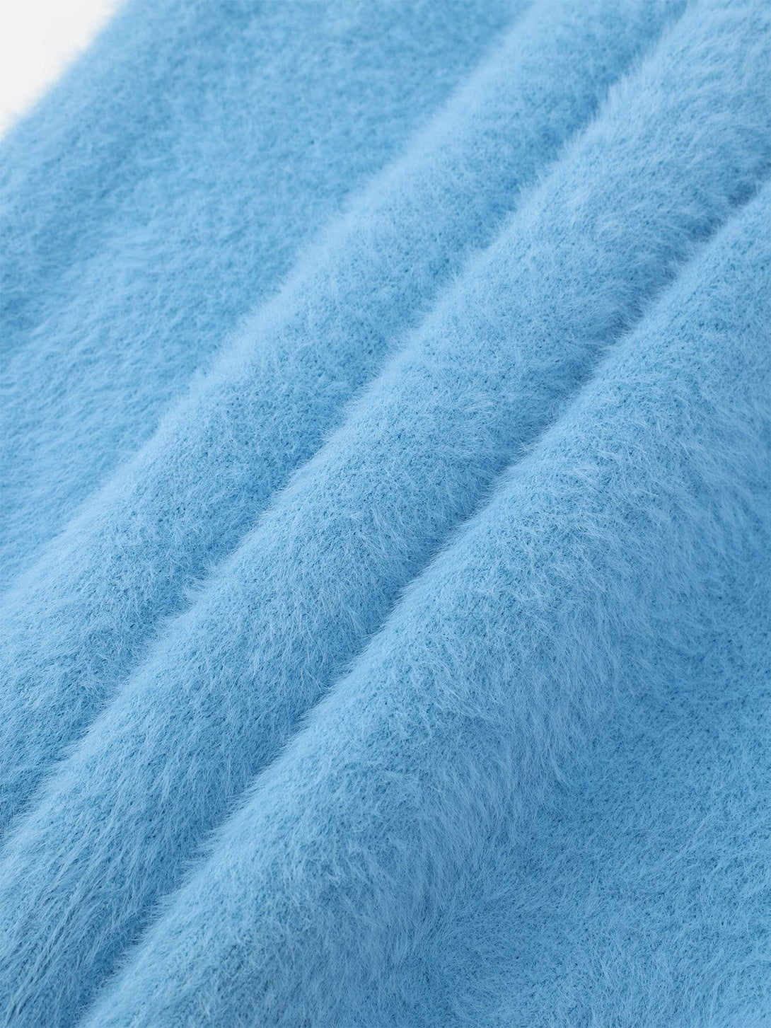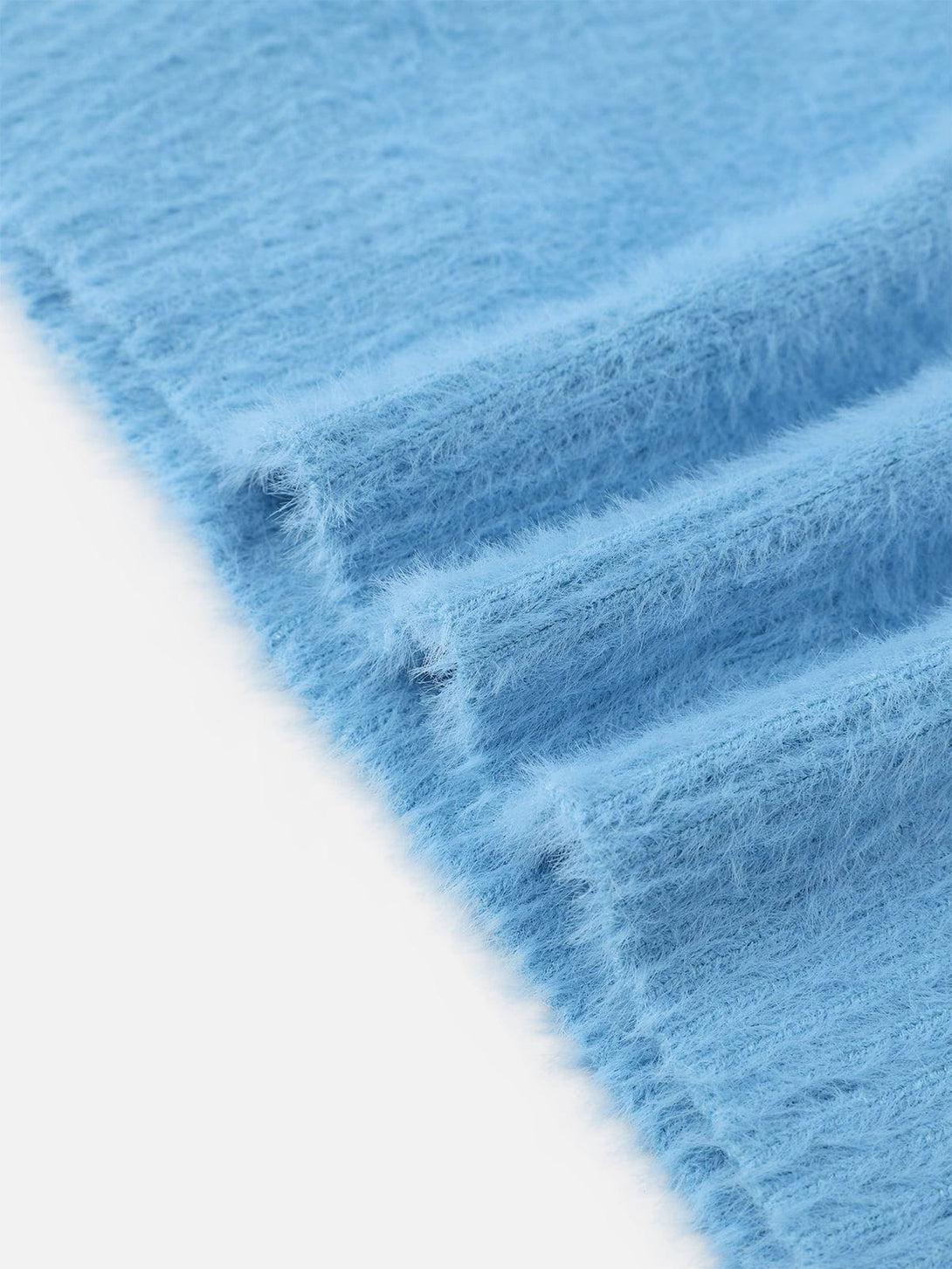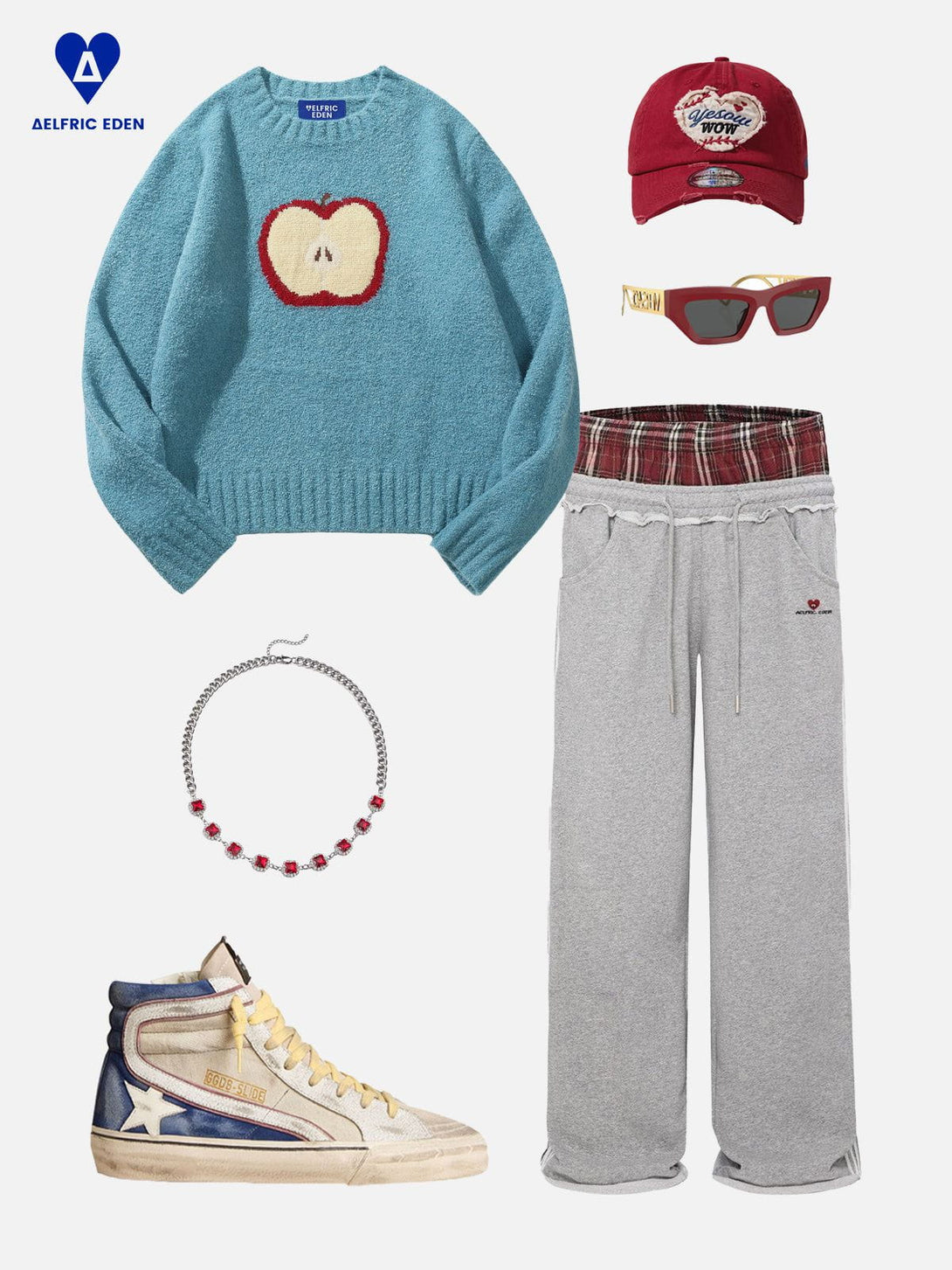 Bright red and cream collide with fun vibrancy in this soft, short sweater embellished with a playful apple pattern on the chest. The dense knit brings a warm touch, and the loose fit with ribbed edges makes it naturally cozy and comfortable. It's easy to show off your sweet and playful style.