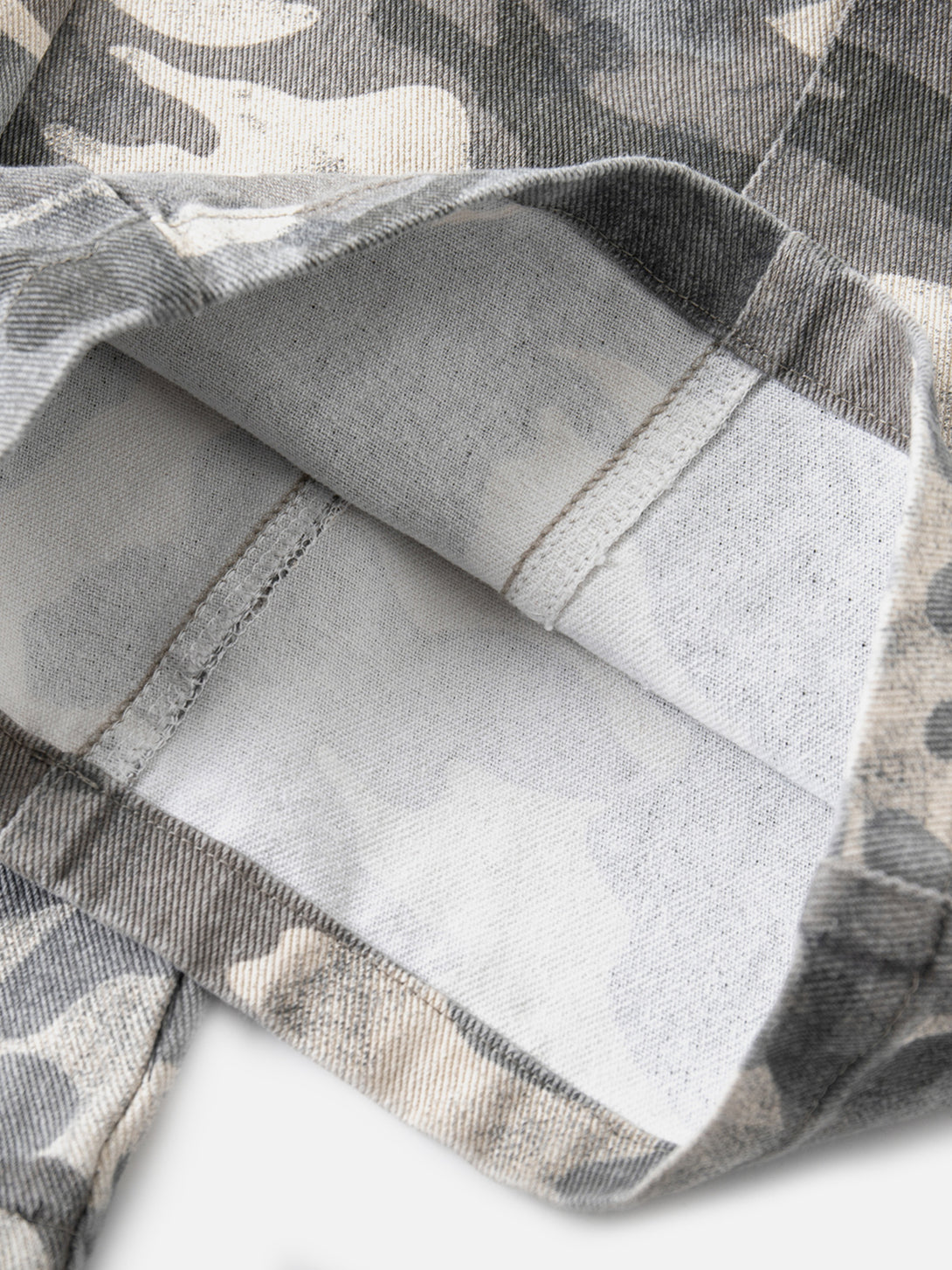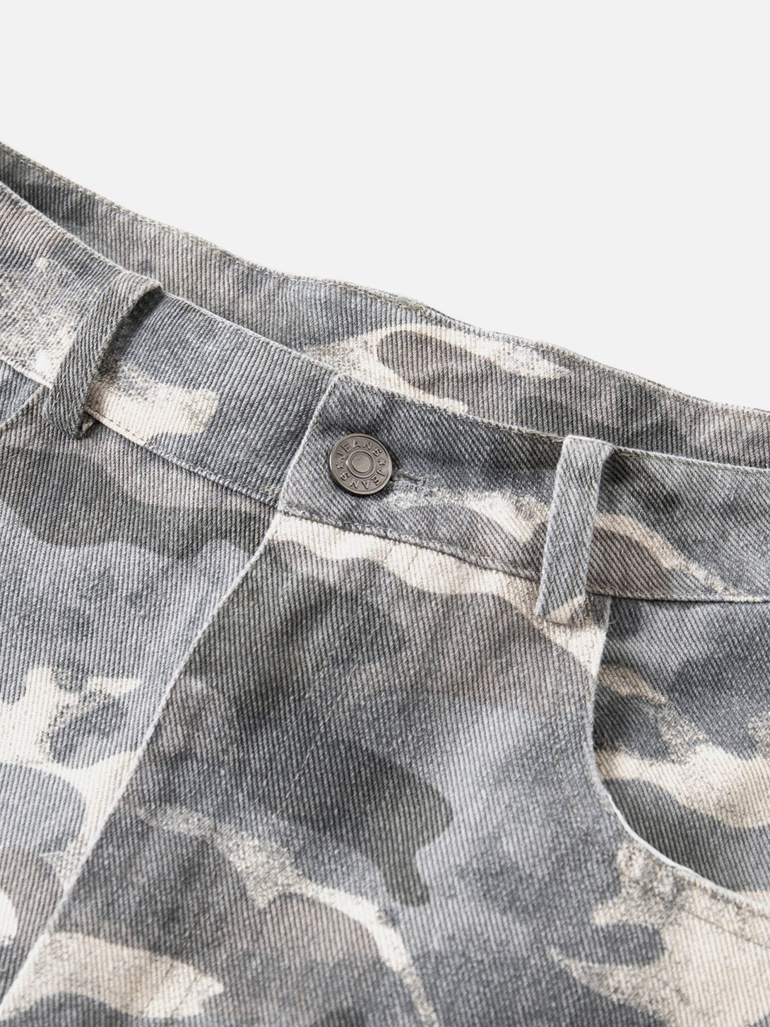 Blending classic street culture with bold camouflage, these pants redefine urban style. The signature curved cut adds a sleek, modern edge, elevating the rugged aesthetic. Tough yet refined, theyâre made to stand out. Gear up and own the streets.