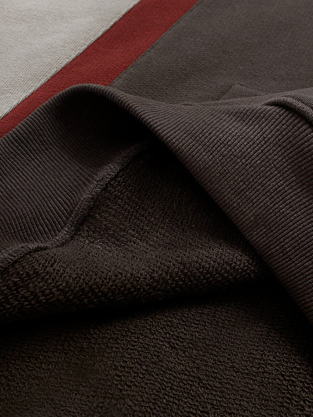 This Aelfric Eden hoodie features a sophisticated color blocking design that blends different color accents together. The patchwork construction enhances its texture, while the central pattern adds an edgy touch to its overall appearance.