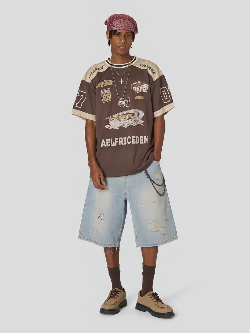 Super high quality jersey like fabric but still maintains breath ability and itâs not rough like youâd expect. The fit and wear is great, high quality decals and works with so many different outfits, as long as you wear brown shoes. Iâm 5â9 and 150lbs, athletic/bulky build and the medium fit me perfectly.