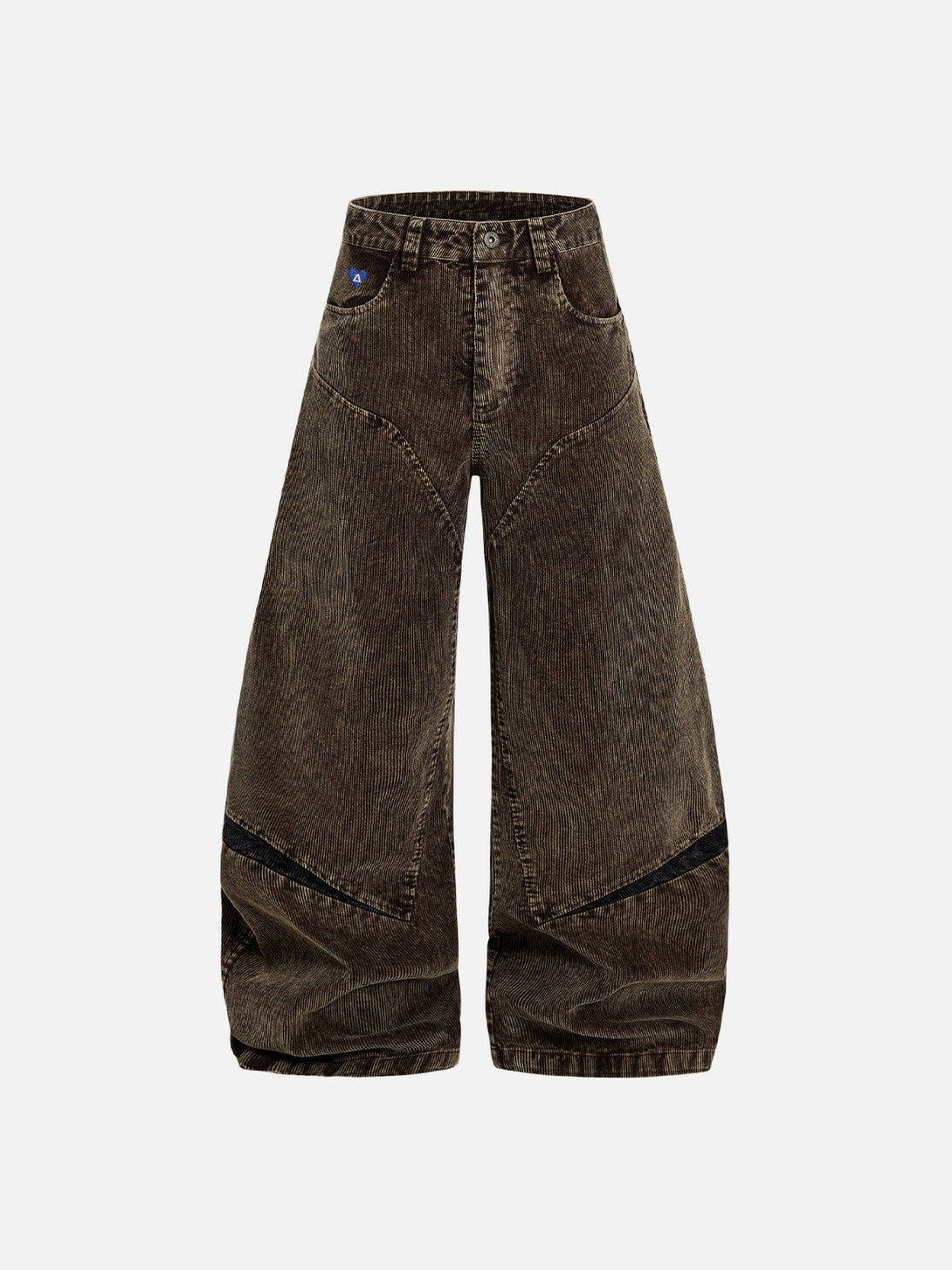 These corduroy baggy barrel pants feature a bold, sculpted silhouette with curved panel detailing that adds structure and dimension. Finished with a washed, worn-in look, they deliver a retro-leaning texture perfect for oversized, statement-driven styling.
