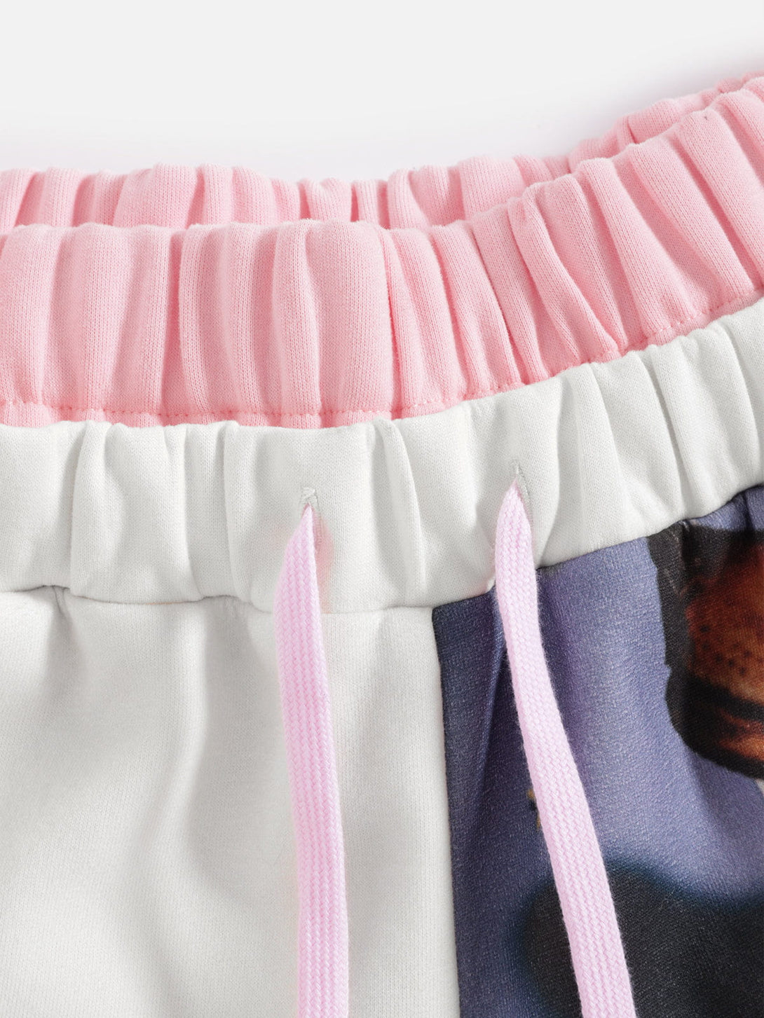 A chaotic-cute collage takes over these baggy sweatpants, mixing cut-out graphics, playful colors, and expressive dachshund shots into one bold visual hit. The double-waist twist amps up the attitude, turning everyday comfort into a statement mood.