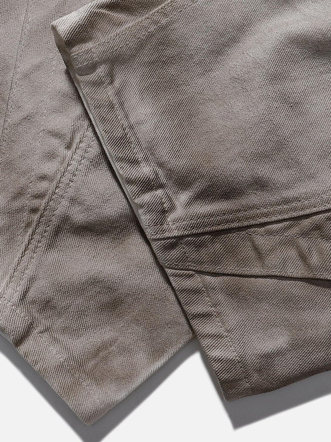 Crafted with a rugged dirt-toned wash, these jeans reinterpret classic denim through a bold barrel silhouette. Curved seam details sculpt the wide-legged shape, blending utilitarian edge with modern volume. Heavyweight fabric ensures structure while maintaining a relaxed drape.