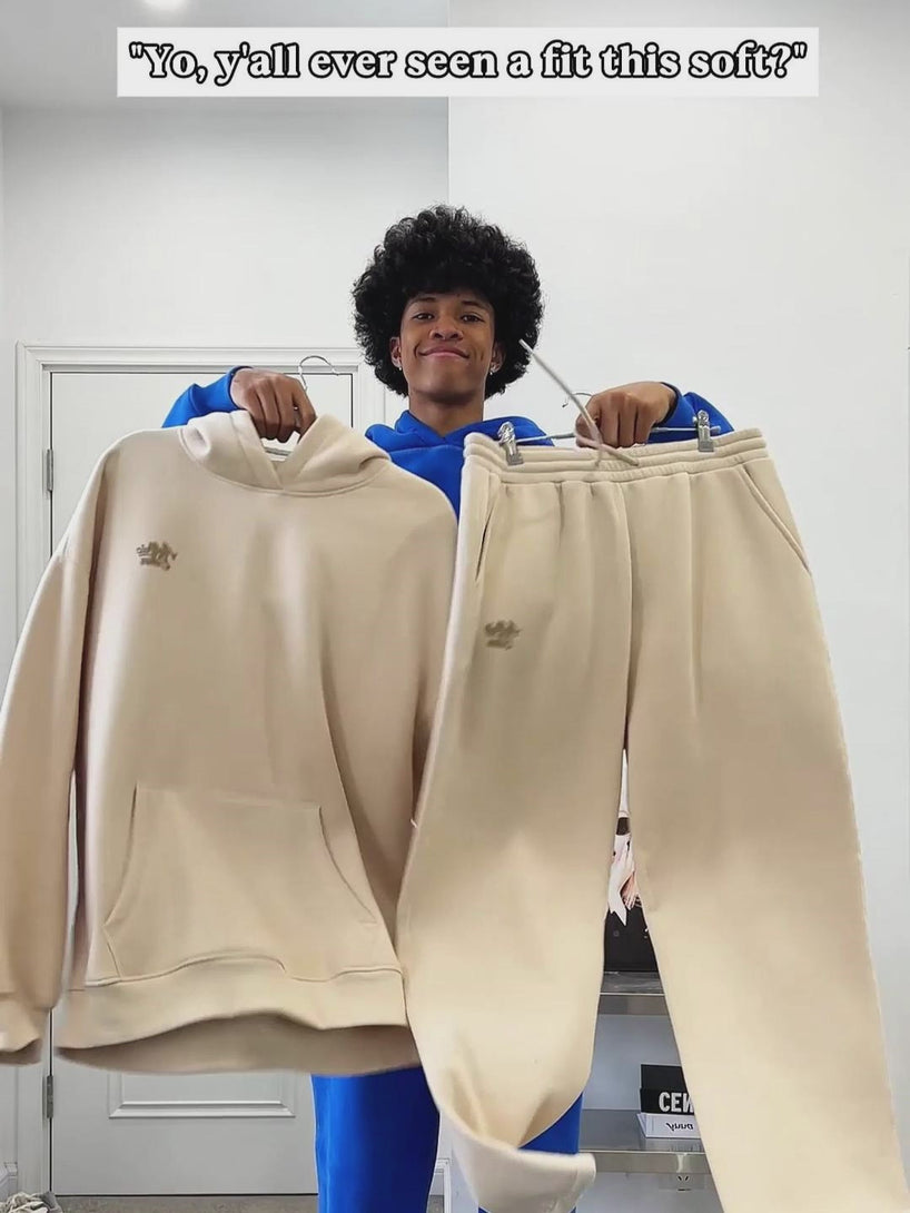 The hoodie drapes with quiet precision — oversized, yet composed. The straight-leg sweatpants mirror their flow with a natural line that moves in harmony with the body. Every stitch and proportion has been refined through real feedback from millions worldwide, engineered for a relaxed fit that feels deliberate, never forced.