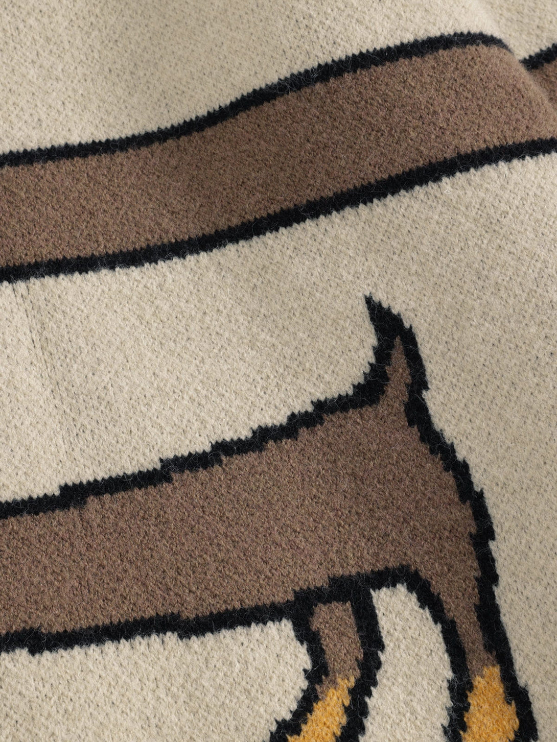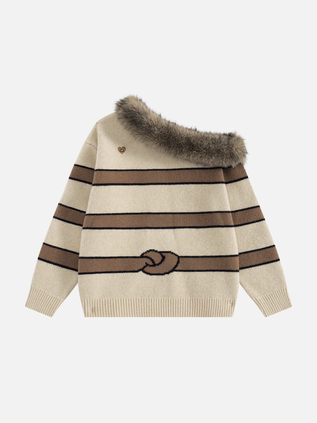This off-shoulder knit plays with attitude and humor â featuring a faux-fur trim that drapes effortlessly and a dachshund graphic stretched across the body for a playful, unexpected twist. Soft, cozy, and full of character, it turns a simple knit into a statement piece with charm and edge.