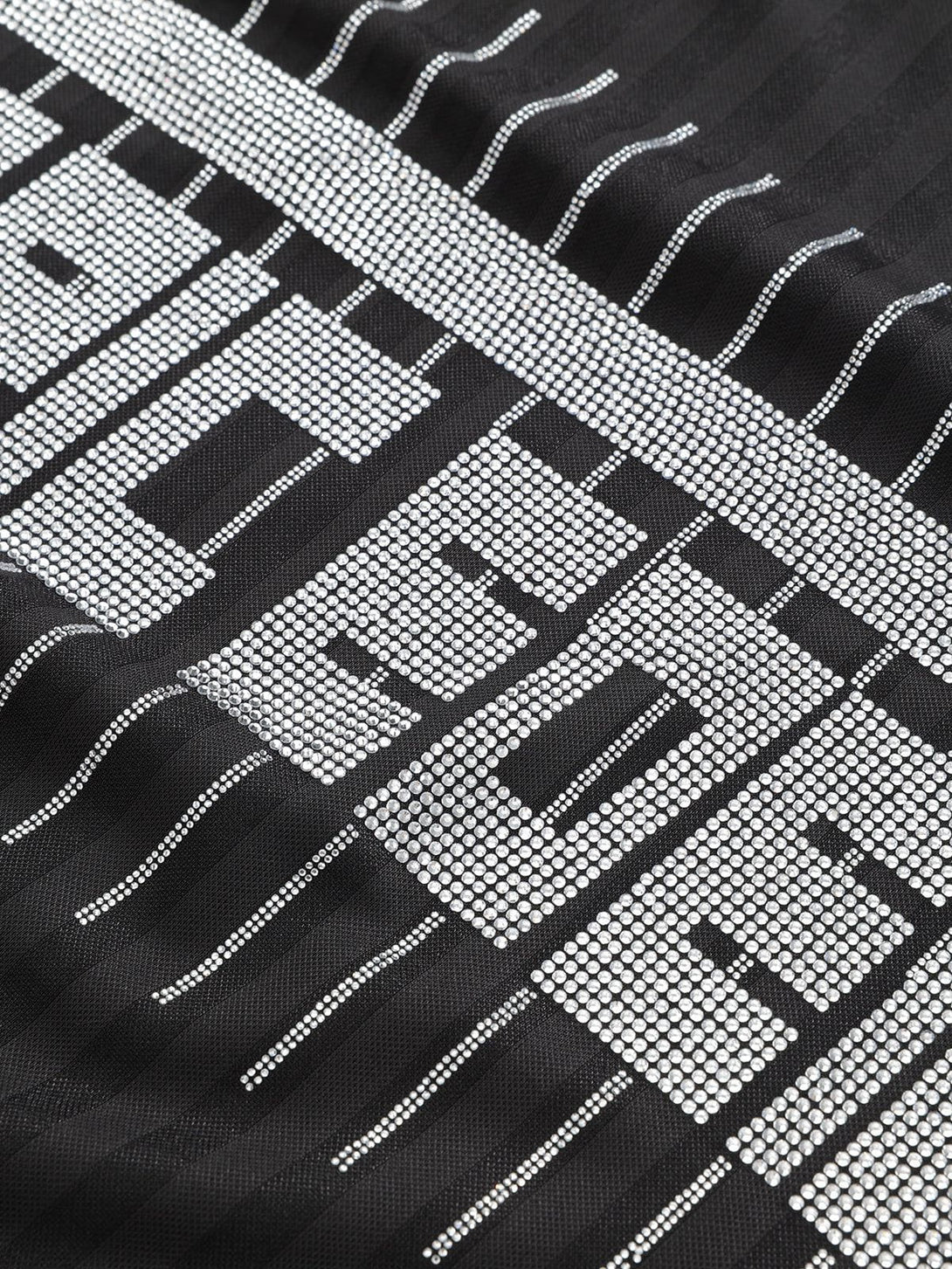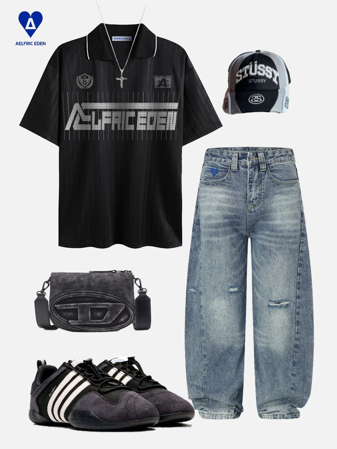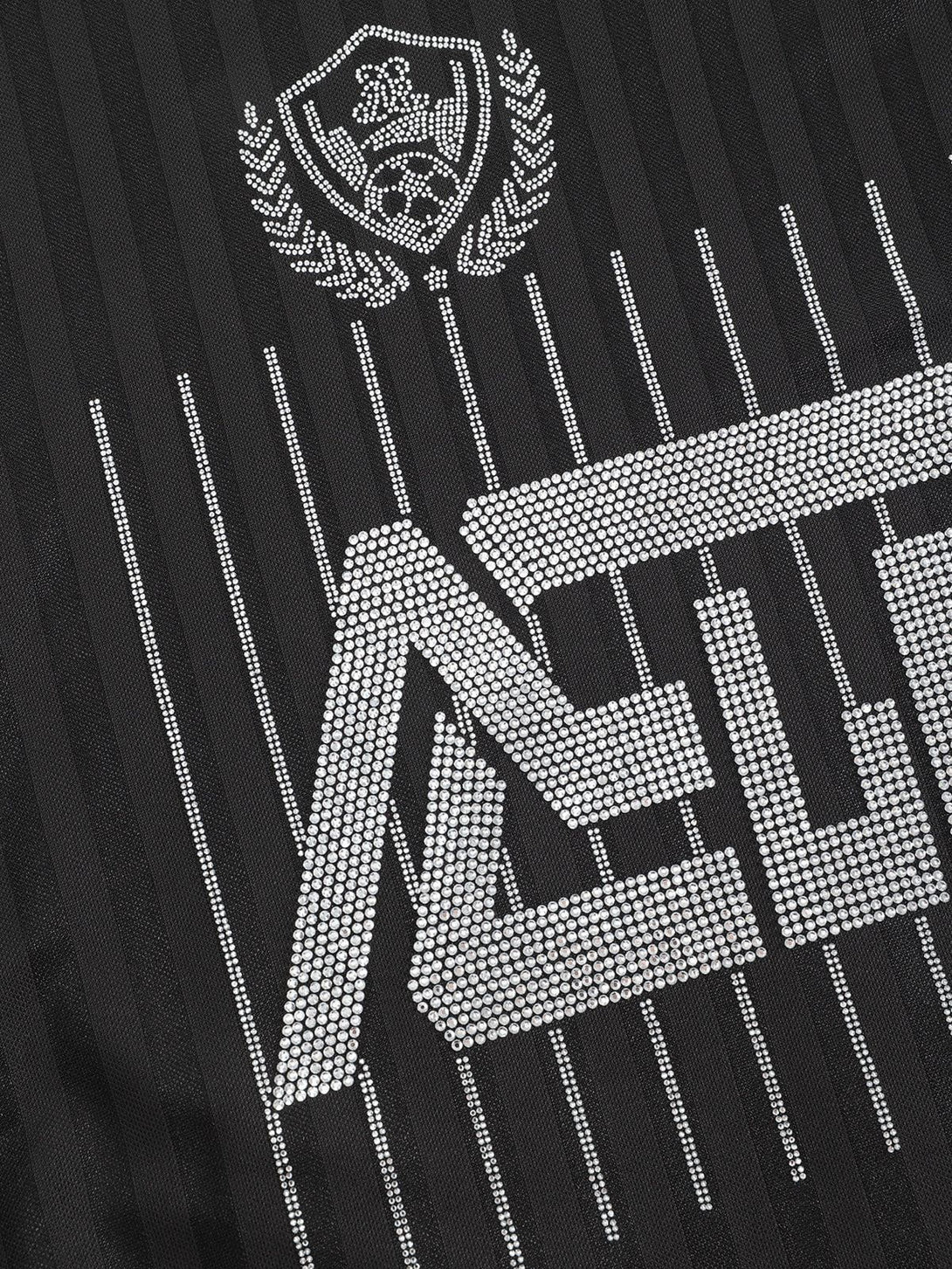 Elevate your everyday look with a dazzling twist. This jersey combines classic polo structure with bold streetwear flair. Featuring shimmering rhinestone lettering on the chest and a sleek contrast collar, itâs designed to stand out while staying effortless.
