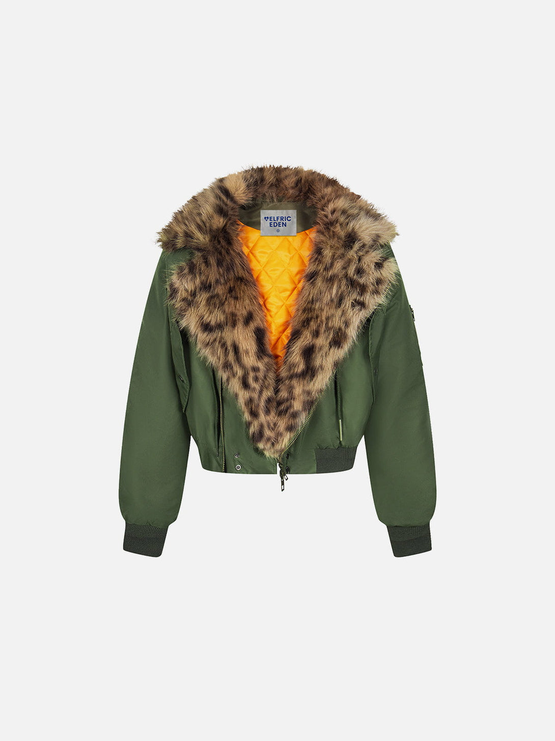Aelfric Eden Leopard Faux Fur Collar Coat