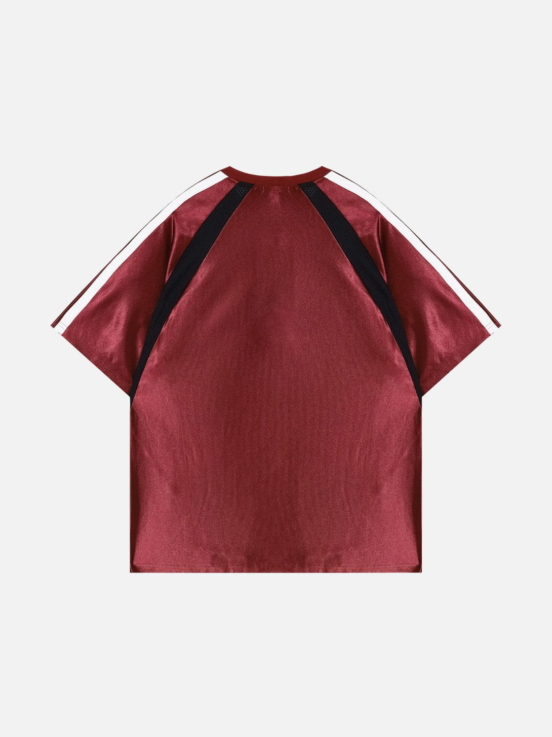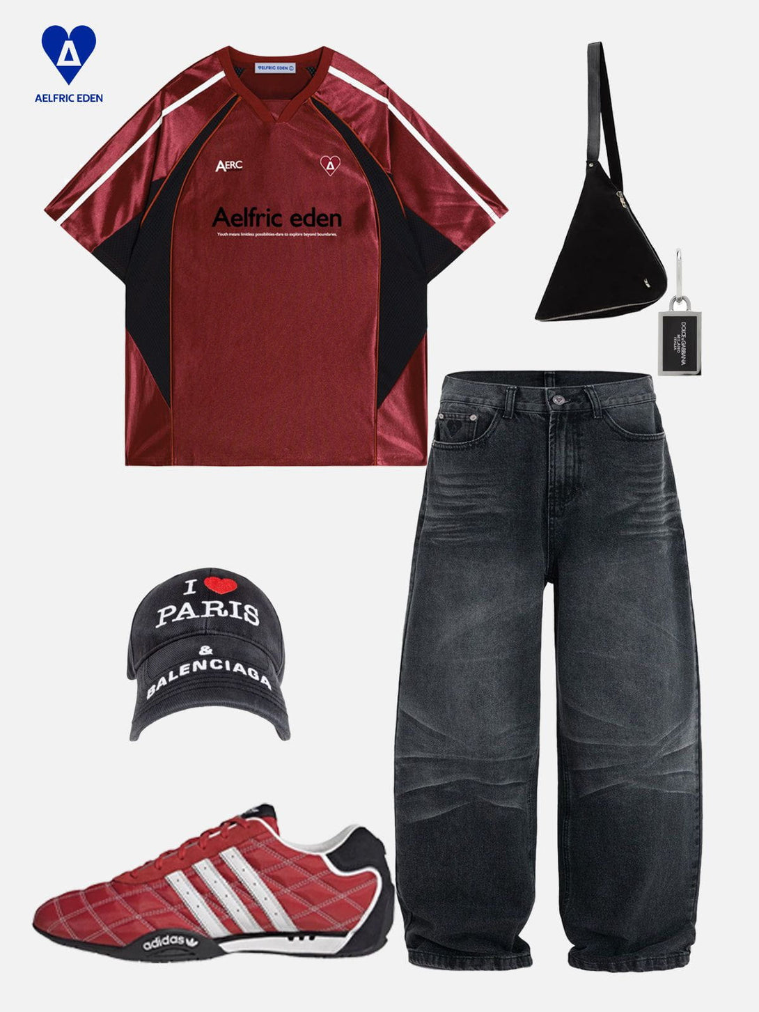 The Aelfric Eden Mesh Color Blocking Soccer Jersey takes cues from the fast lane — where bold graphics, technical fabrics, and oversized silhouettes collide. With a mix of mesh inserts and racing-inspired prints, it’s built for movement, airflow, and unmistakable street presence.