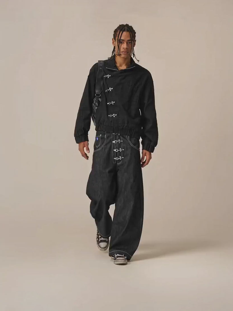 The metal button placket is super sturdy. It's way more secure than a standard zipper and gives the front a really cool, structured look.