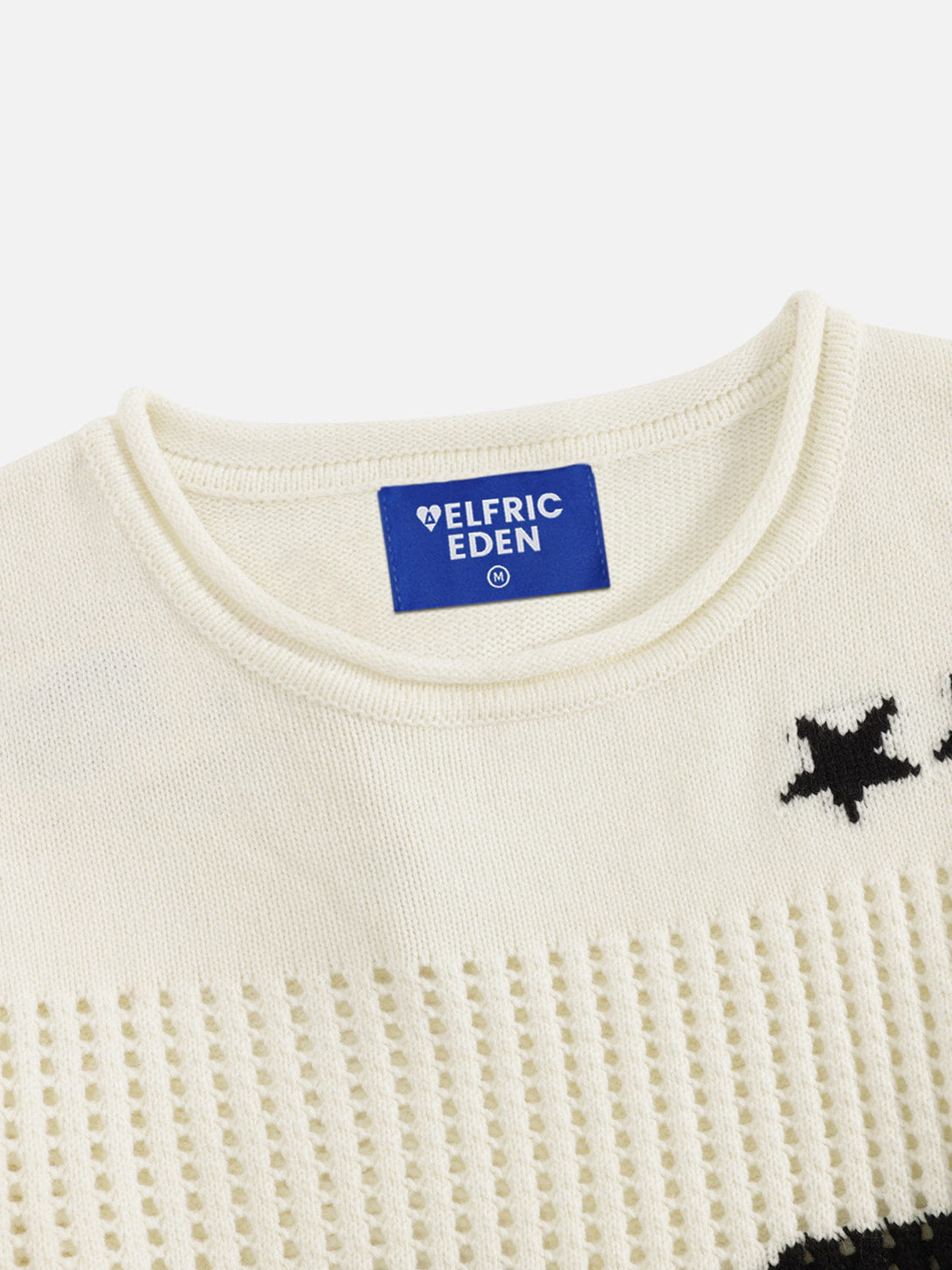 This sweater mixes sporty attitude with a textured twist.The bold number graphic pairs with an eyelet knit pattern, giving the piece a breathable, dimensional look that stands out without trying.Soft yarn keeps it comfortable for everyday wear, while the playful star detail adds a subtle touch of character.