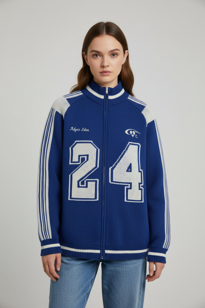 Surprisingly warm yet breathable. The numbered pattern makes it stand out from basic cardigans.