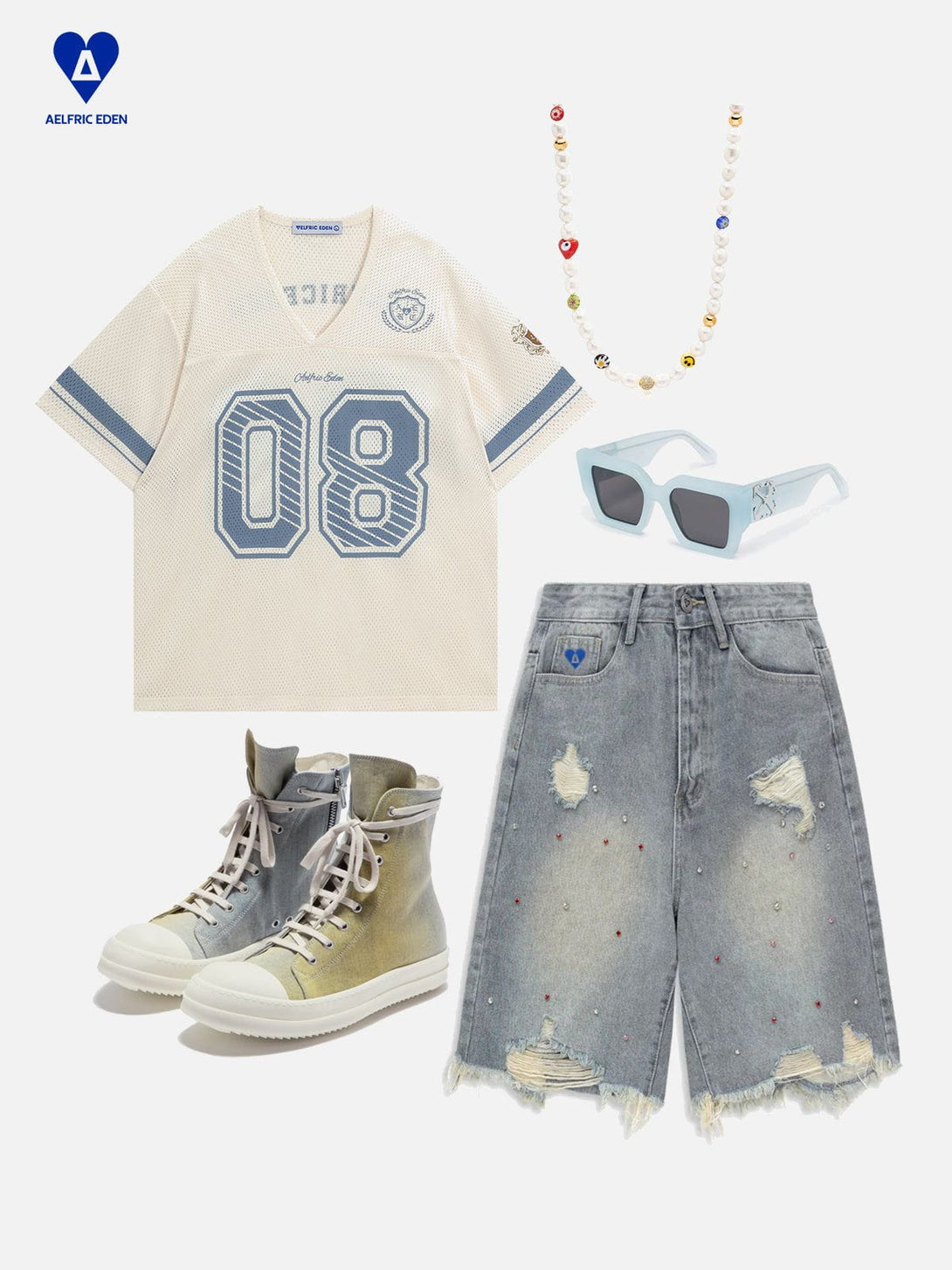 Soft beige meets sporty blue in this breezy mesh teeâfeaturing a bold â08â graphic, it blends gentle energy with dynamic flair. Lightweight and breathable, itâs your go-to for effortless summer style.