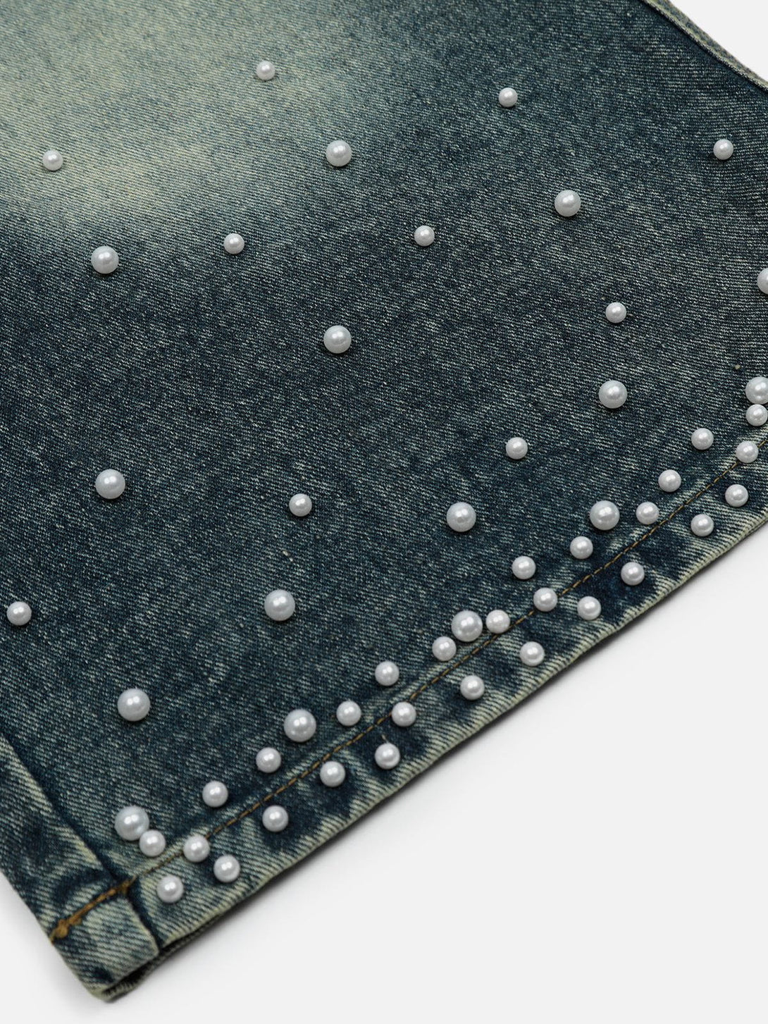 These Jorts strike the perfect balance between casual and glam, with delicate faux pearl embellishments adding a touch of elegance. The refined accents elevate the look, turning simple styling into a standout moment.