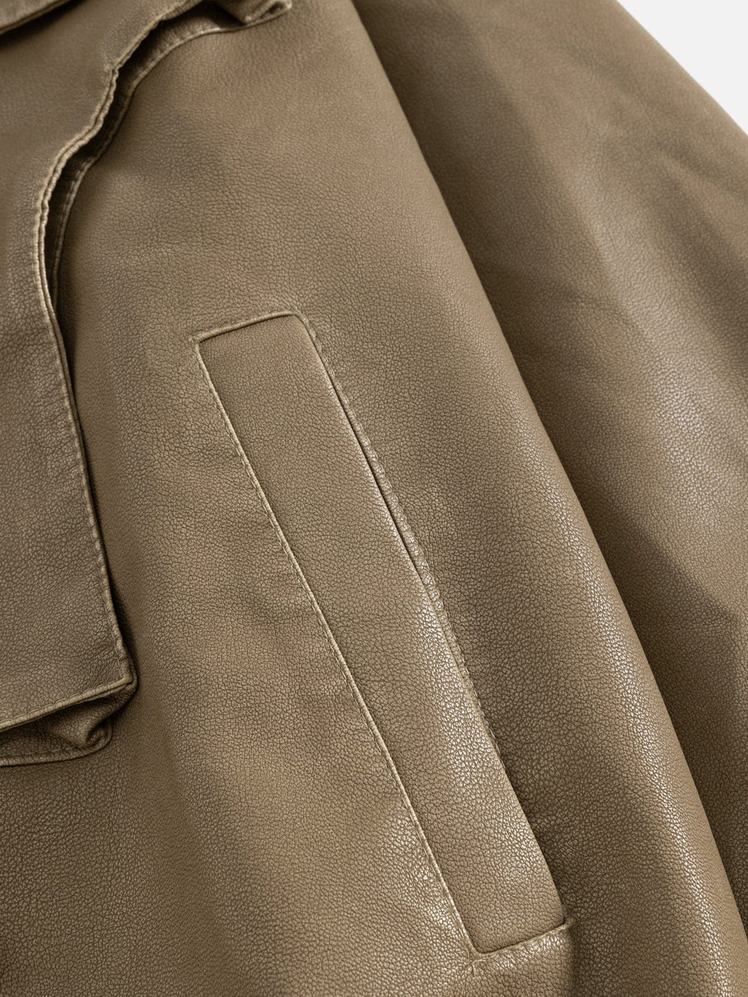 Upgrade your streetwear rotation with this faux leather jacket, featuring multiple utility pockets and a structured silhouette for a bold, modern edge. Crafted from smooth, durable faux leather, it delivers a sleek look and versatile layering â where function meets effortless style.