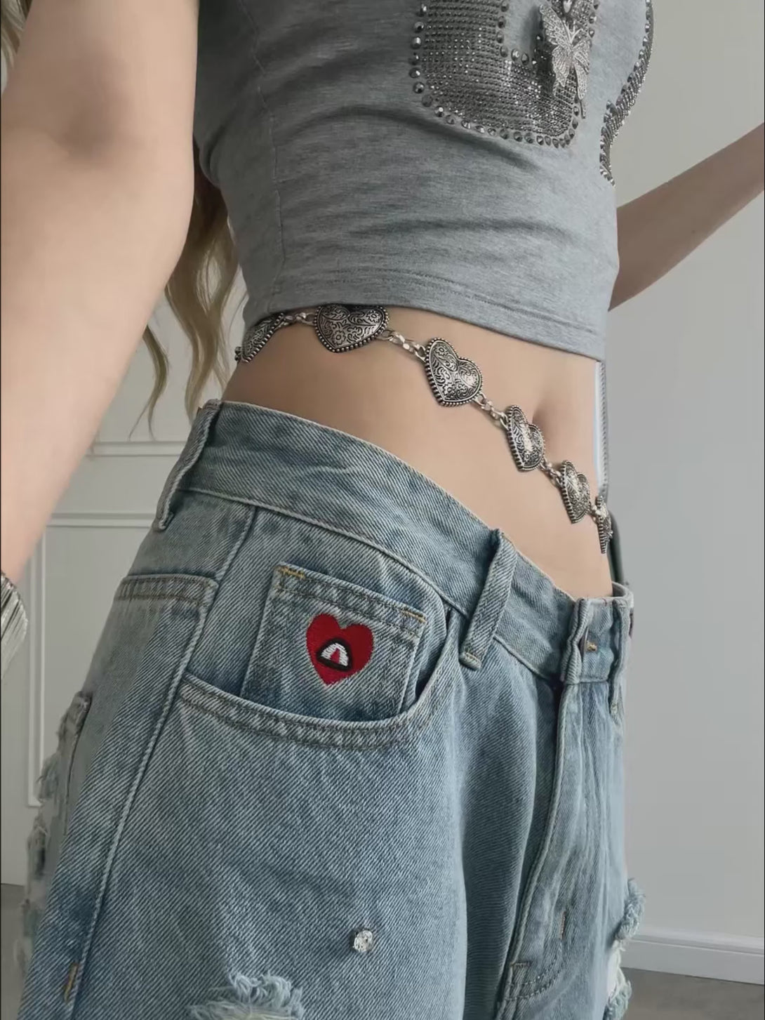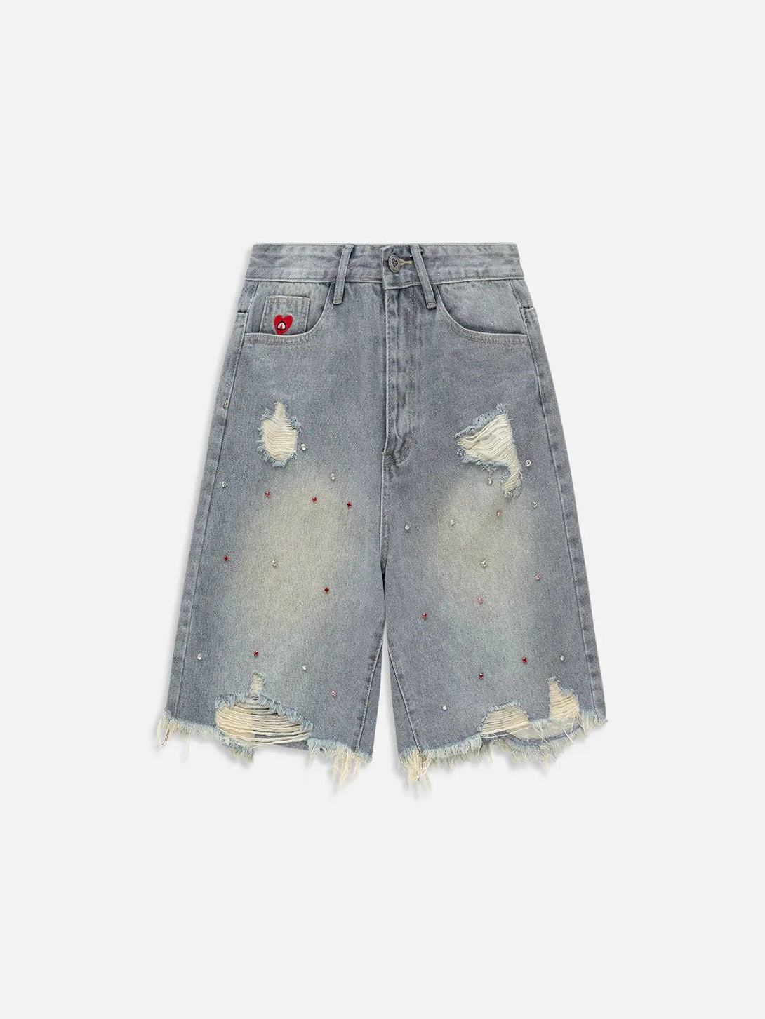 The jorts are trendy but still have lasting style and wear. Rhinestones are a subtle and unique touch.