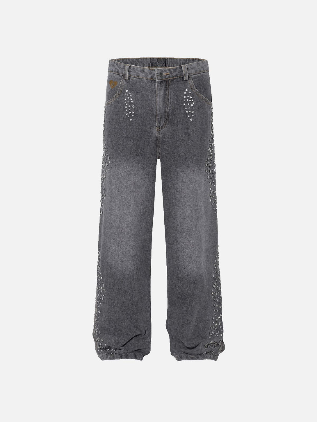 The Side-Embellished Rhinestone Loose Jeans bring a touch of sparkle to casual style with their eye-catching rhinestone details. The relaxed, loose fit ensures all-day comfort while adding a statement-making edge to your everyday look.