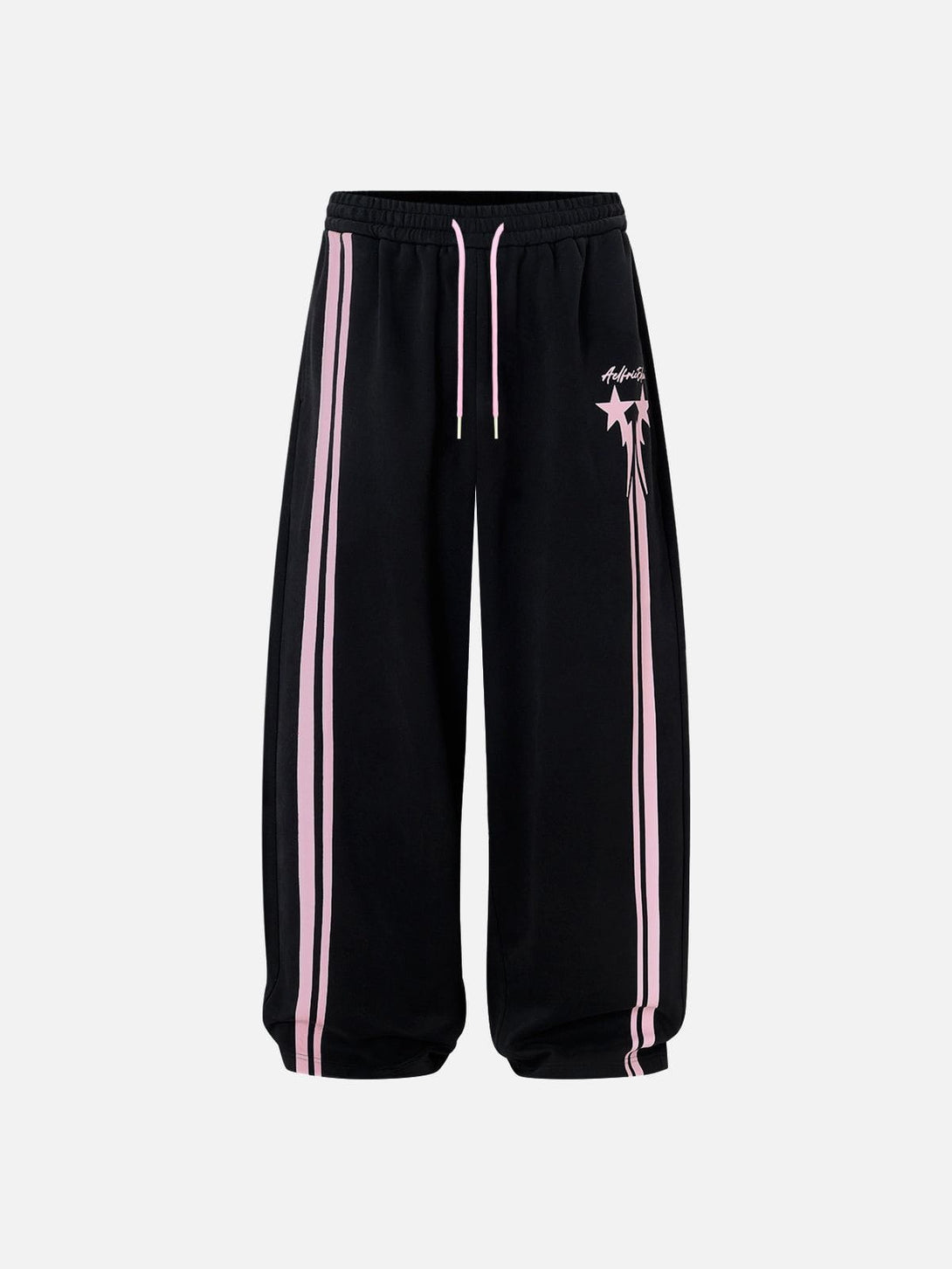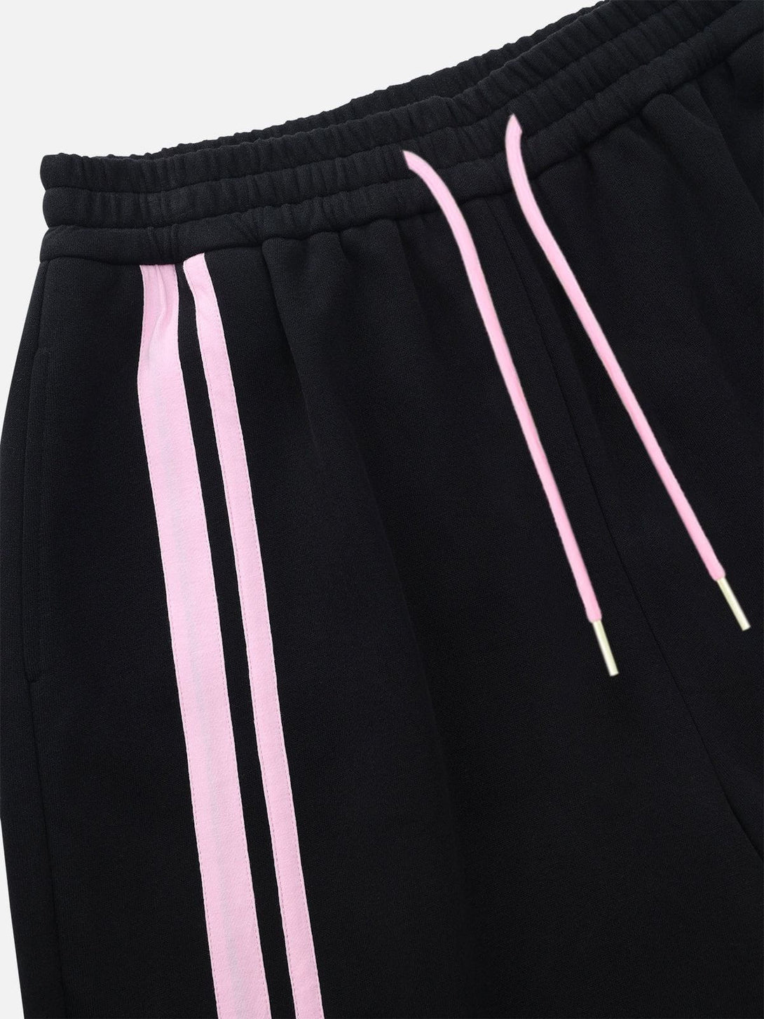 Bold meets chic â these black and pink contrast sweatpants turn heads with their striking color clash and sleek side stripes that elongate your legs. Designed for both comfort and style, they blend fashion-forward flair with an easygoing fit. Whether you're hitting the gym or the streets, they're your go-to for effortless cool.