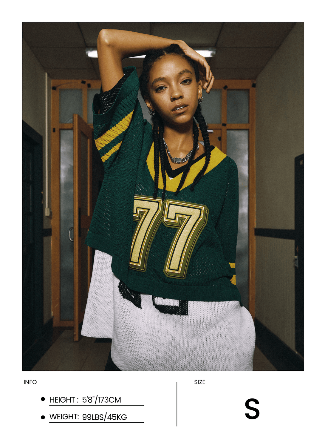 Bright yellow meets deep green in a striking contrast that captures the energy of a sunny field â fresh, natural, and full of life. The breathable knit fabric with stretch-enhancing perforations offers freedom in every move, while the V-neck adds a touch of effortless ease.