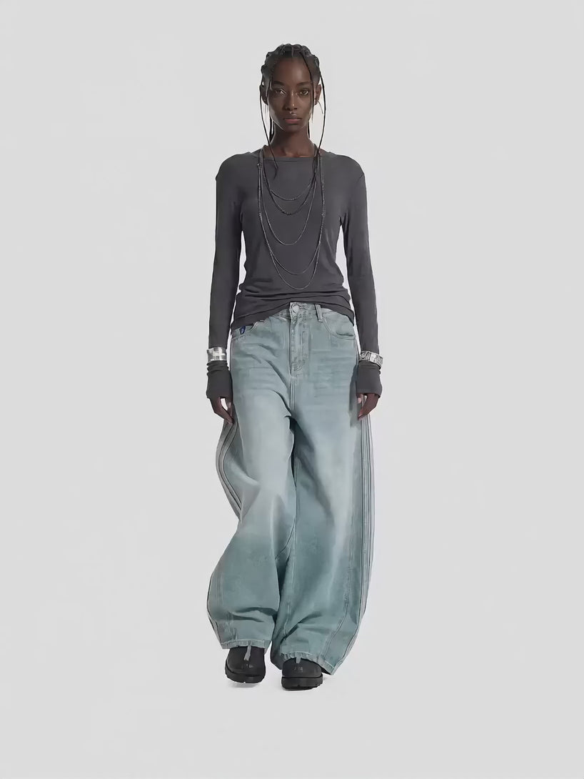 The Stripe Baggy Barrel Jean is engineered for impact. This isn't just a baggy fit—it's a masterclass in proportion, blending a roomy thigh with a dramatic, curved leg that narrows at the ankle. Inspired by the most iconic archival silhouettes, it’s been meticulously finished to feel like a vintage find from day one.