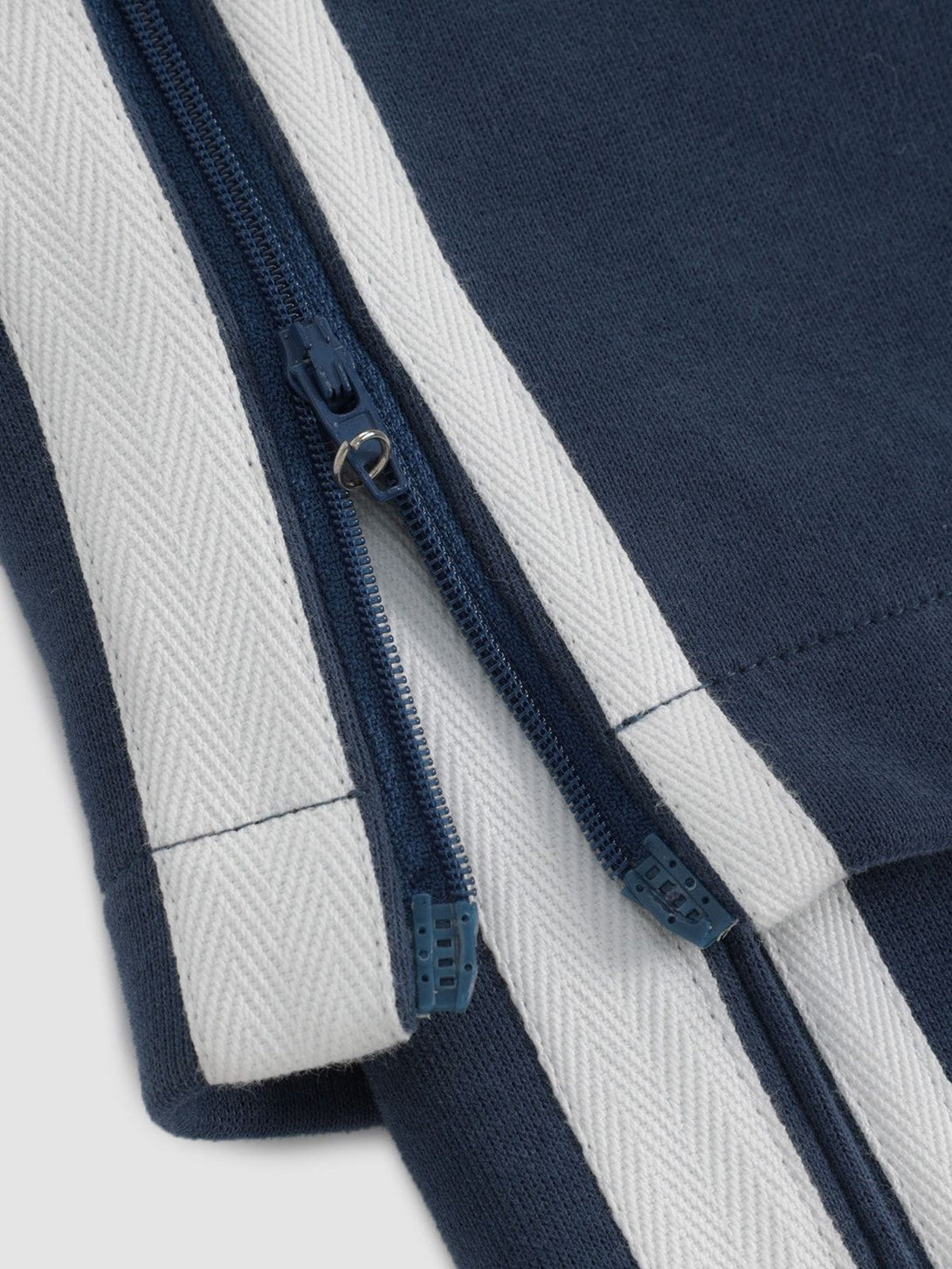 Stripe zip-up two layer sweatpants combine innovative design with practical comfort, featuring a dual-layer construction that enhances durability and style. The zip-up detail allows for easy adjustment and a tailored fit, making them an essential choice for those seeking both functionality and a sleek, modern look.