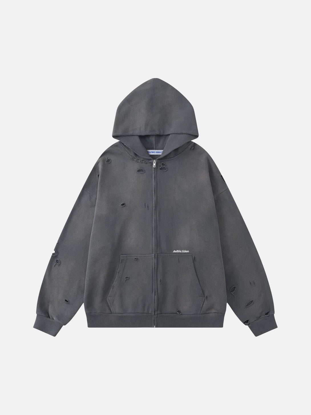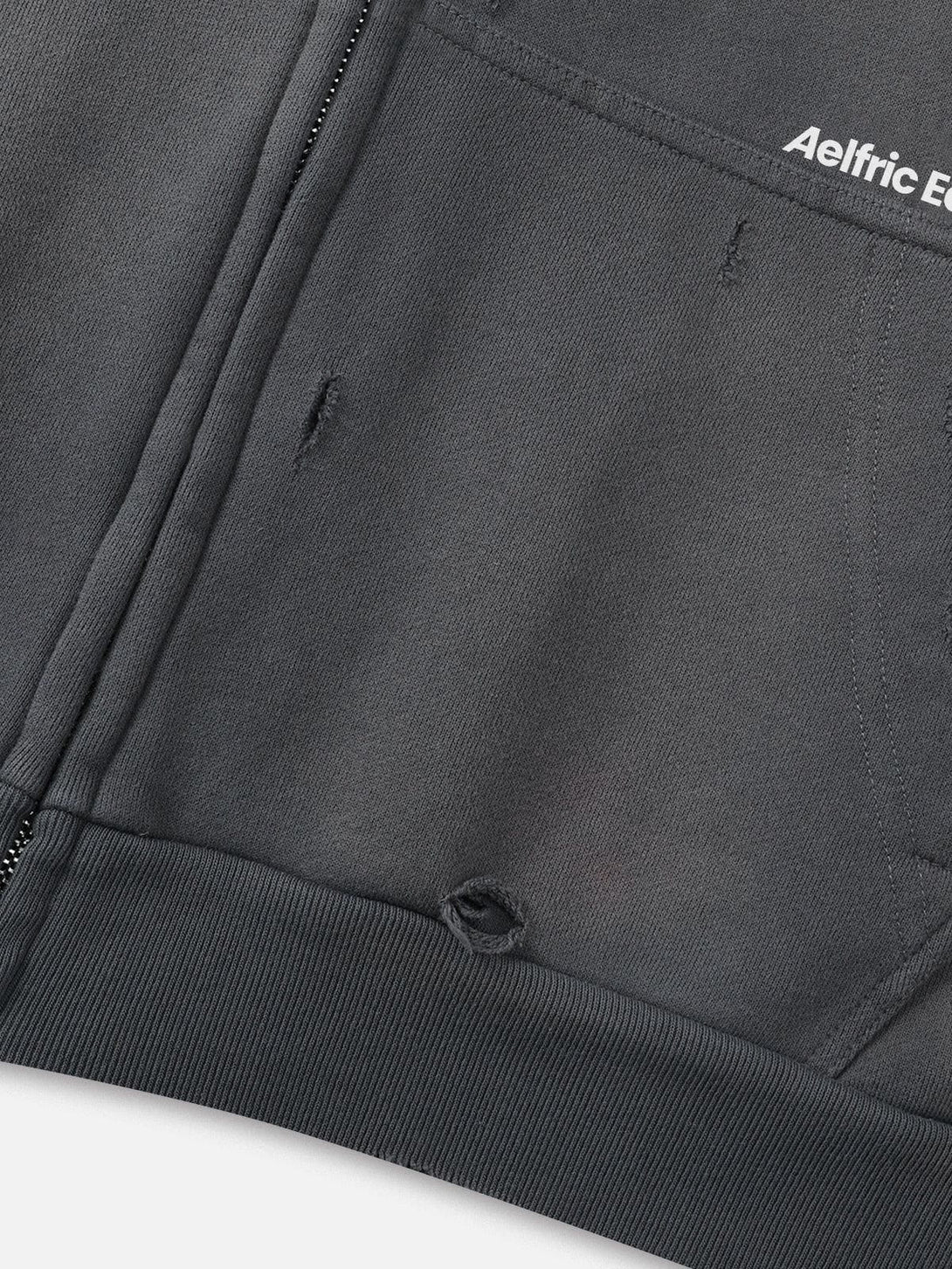 Aelfric Eden Oversized Distressed Zip-Up Hoodie