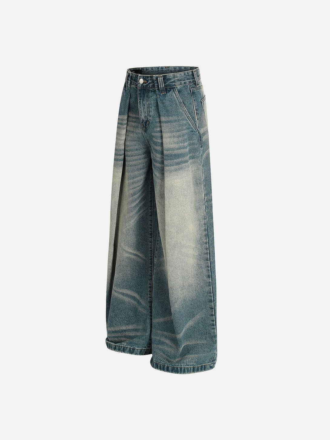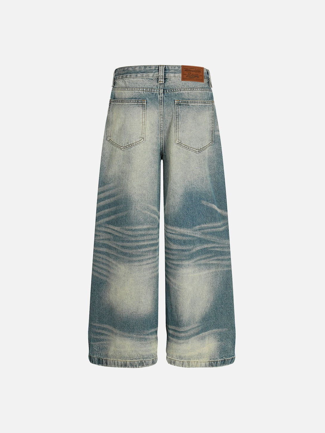 Washed whiskering and subtle wrinkles define these Wrinkle Jeans, creating a lived-in, textured look. The relaxed finish and attention to detail give a modern, effortless streetwear vibe.