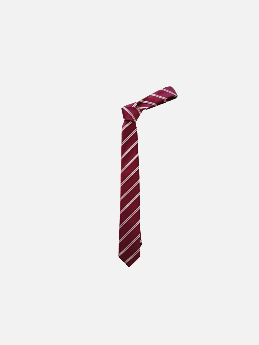 Featuring angled red stripes, it adds a sharp, timeless touch to any outfit. Its deep angora red color creates a sophisticated contrast, making it the perfect accessory for formal and semi-formal occasions. It's a classic piece that elevates your look with understated elegance.
